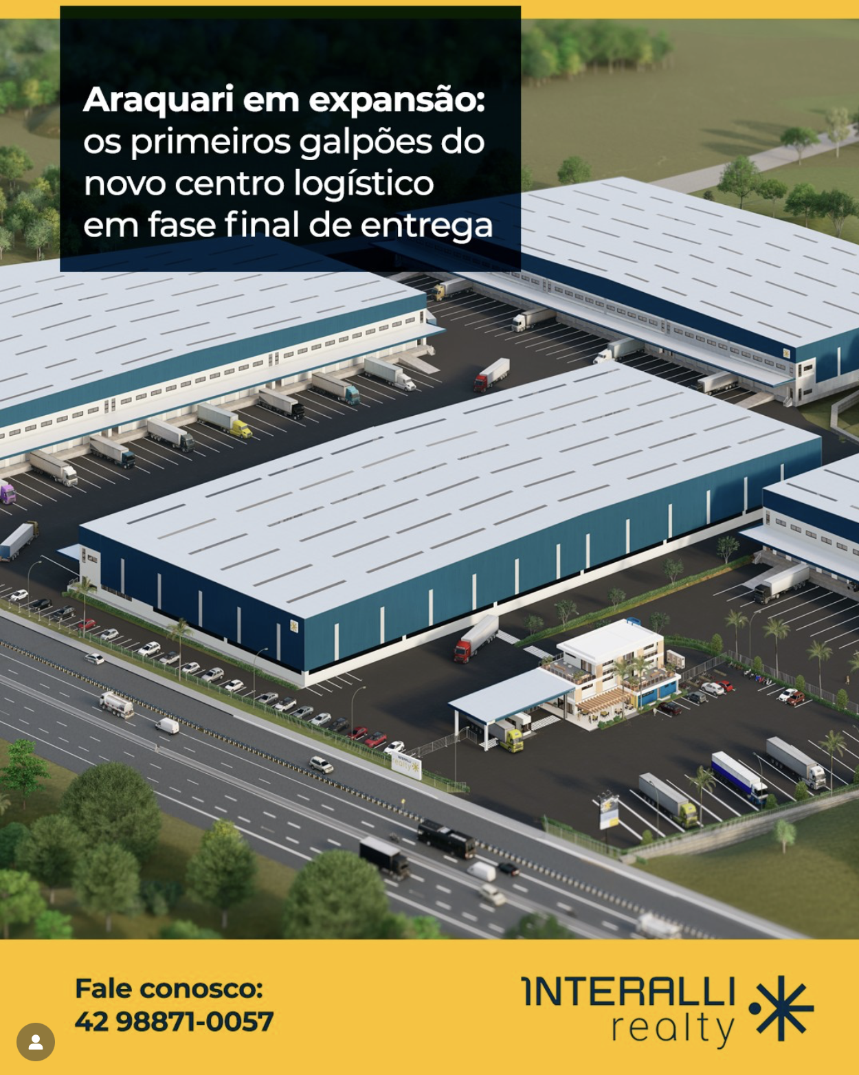 A expansão logística de Santa Catarina ganha força com o novo centro logístico da Interalli Realty em Araquari-SC. Em Janeiro de 2026 será entregue a primeira etapa do projeto para receber empresas que precisam de estrutura moderna, localização estratégica e alto padrão construtivo.