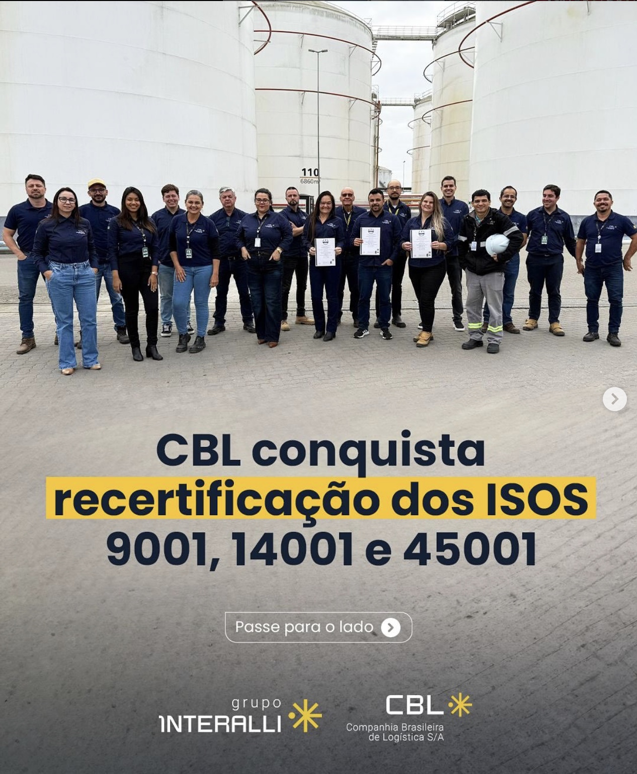 A CBL Liquidos – terminal portuário do Grupo Interalli, localizado nem Paranaguá, garantiu nesta semana a recertificação em três normas voltadas ao sistema de gestão