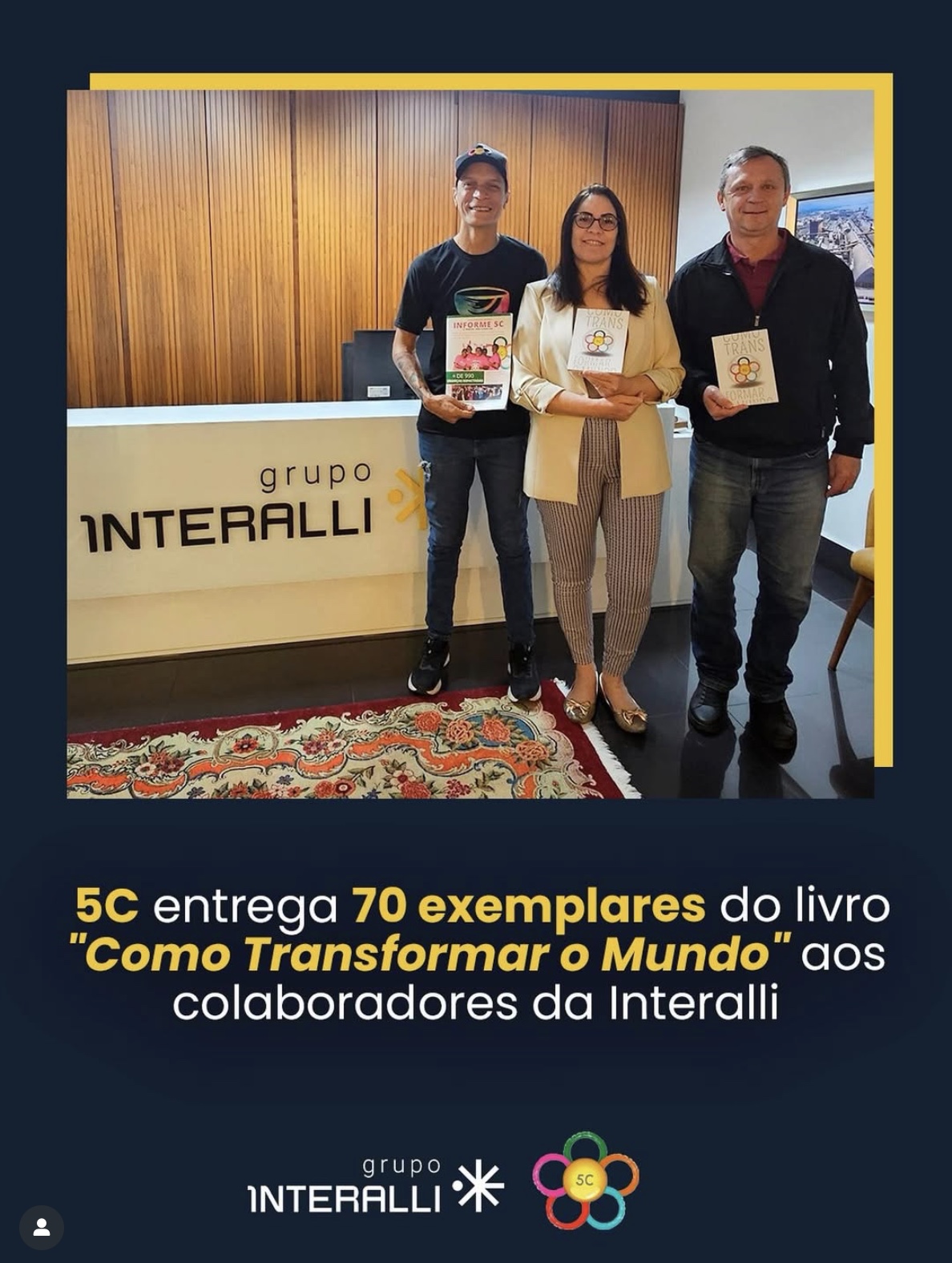 📚 Nesta manhã (10), o @5c_centrocultural esteve na Interalli para realizar a entrega de 70 exemplares do livro “Como Transformar o Mundo” e do Informes