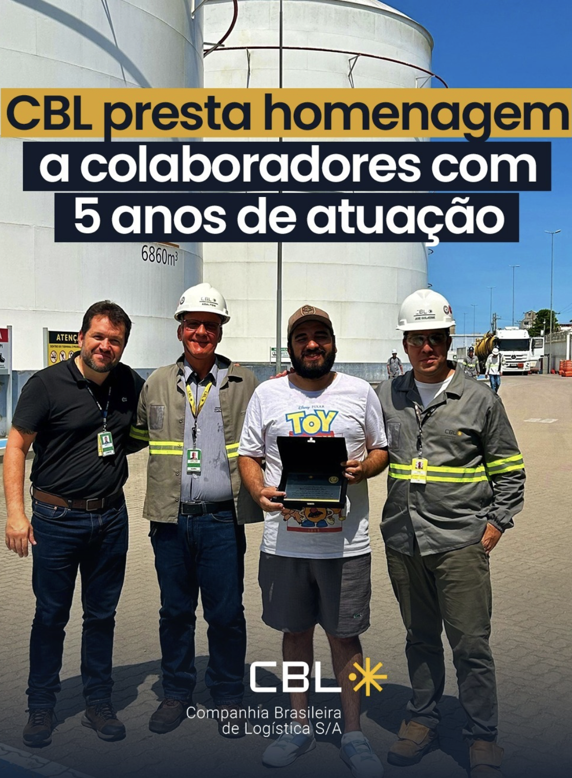 🌟 A CBL – terminal de líquidos do Grupo Interalli – homenageou nesta sexta-feira (16), os 5 anos de atuação dos colaboradores Tiago de Lima,