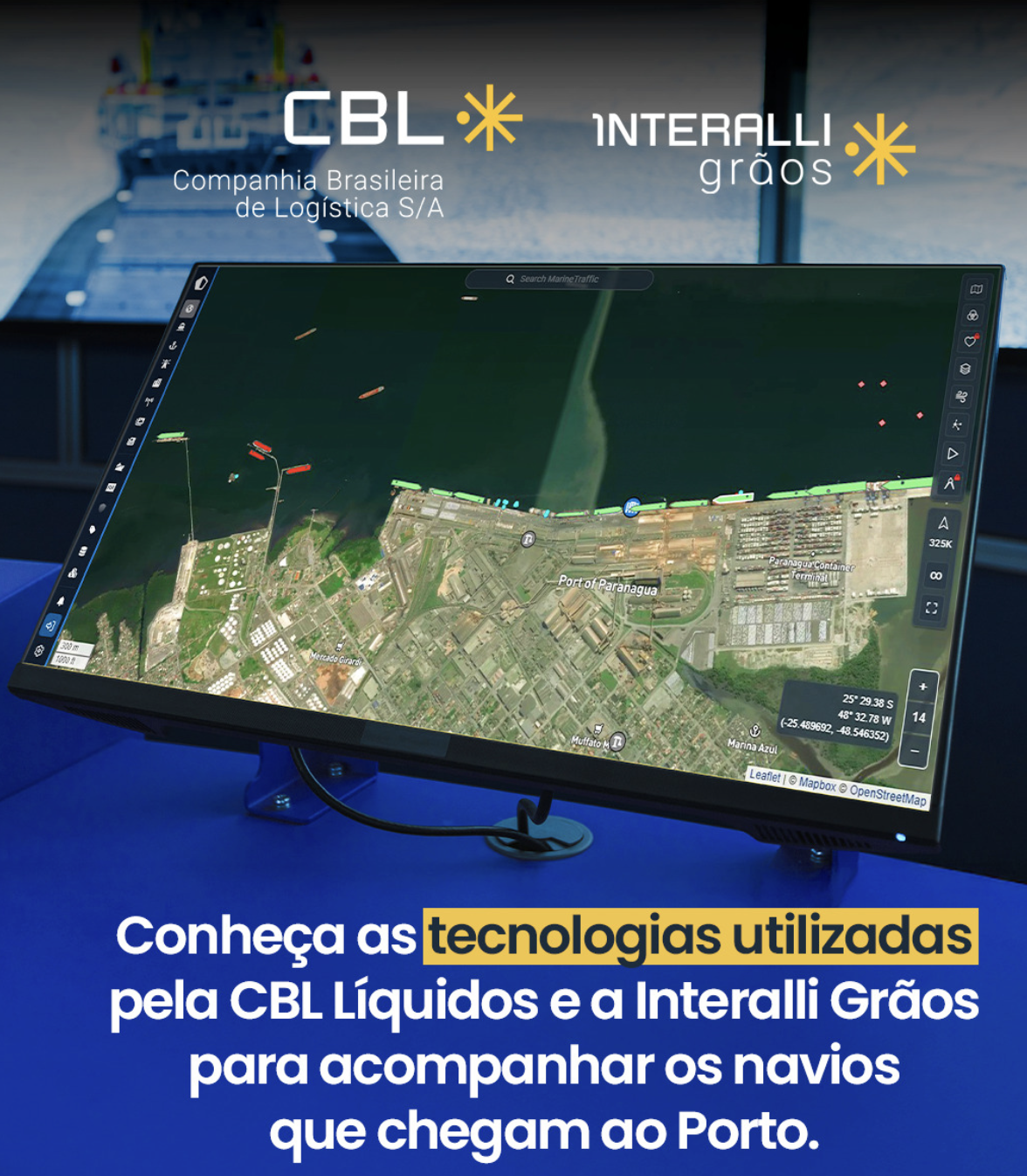 Utilizamos plataformas de monitoramento e sistemas oficiais para acompanhar, em tempo real, os navios que chegam aos nossos terminais no Porto de Paranaguá, garantindo mais previsibilidade, segurança e organização nas operações.