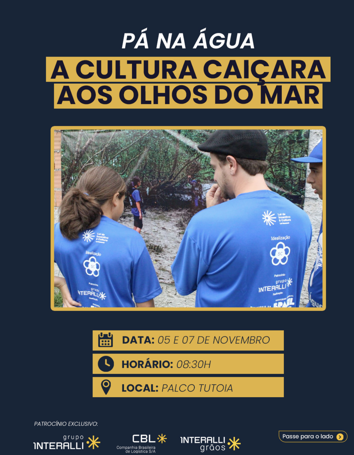 O projeto Pá na Água – A Cultura Caiçara aos Olhos do Mar, idealizada pelo 5C Centro Cultural e patrocinado pelo Grupo Interalli, traz uma rica mostra de arte e cultura capturada pelas crianças e adolescentes de escolas municipais de Paranaguá.